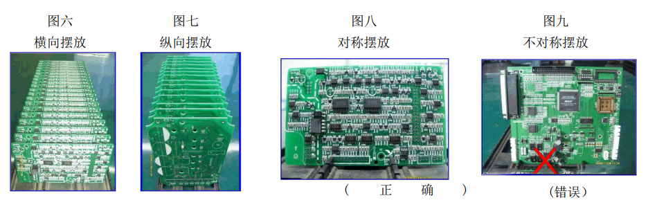 13、存放在容器中的PCBA,码放的原则是避免元器件挤压、碰撞受力。PCBA之间应该用隔板进行隔离,并且不应超过容器的上边缘,以免造成挤压。