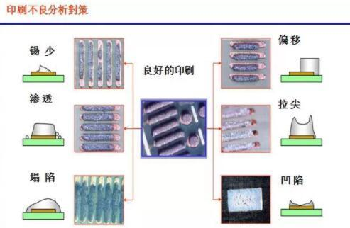 (2)丝印检测内容 a.印刷是否完全;b.有无桥接;c.厚度是否均匀;d.有无塌边;e.印刷有无偏差;检查方法:依据检测标准目测检验或借助放大镜检验。